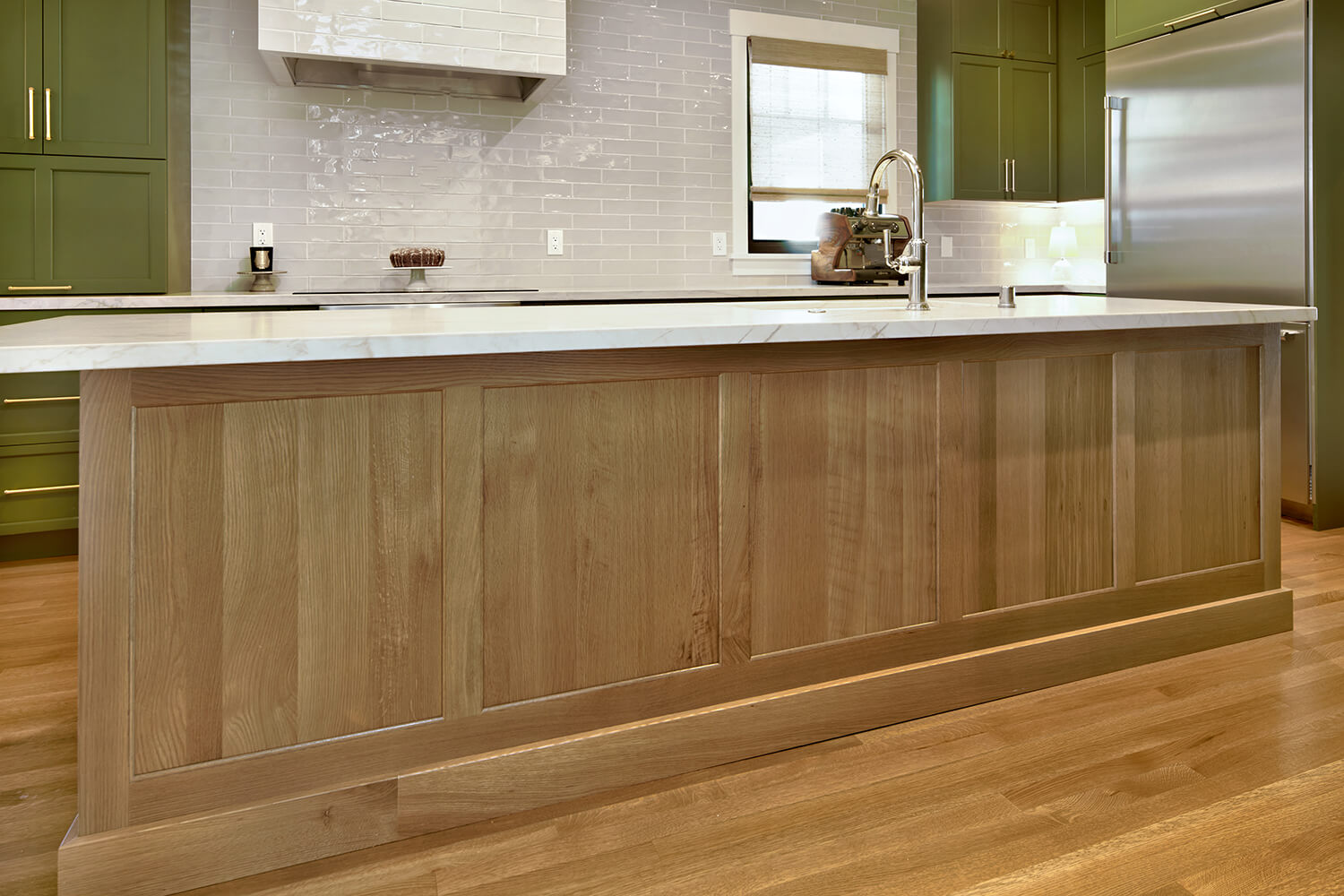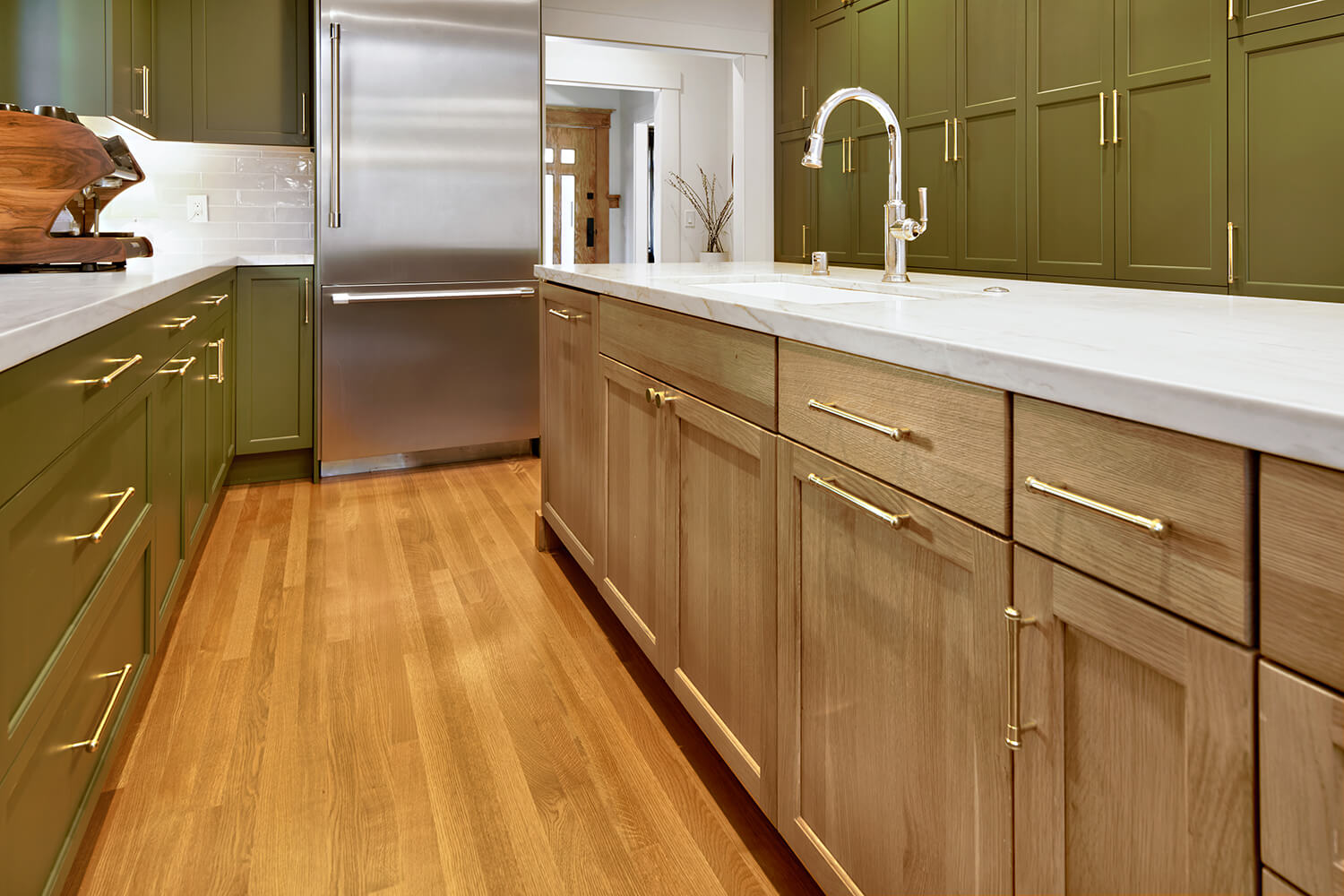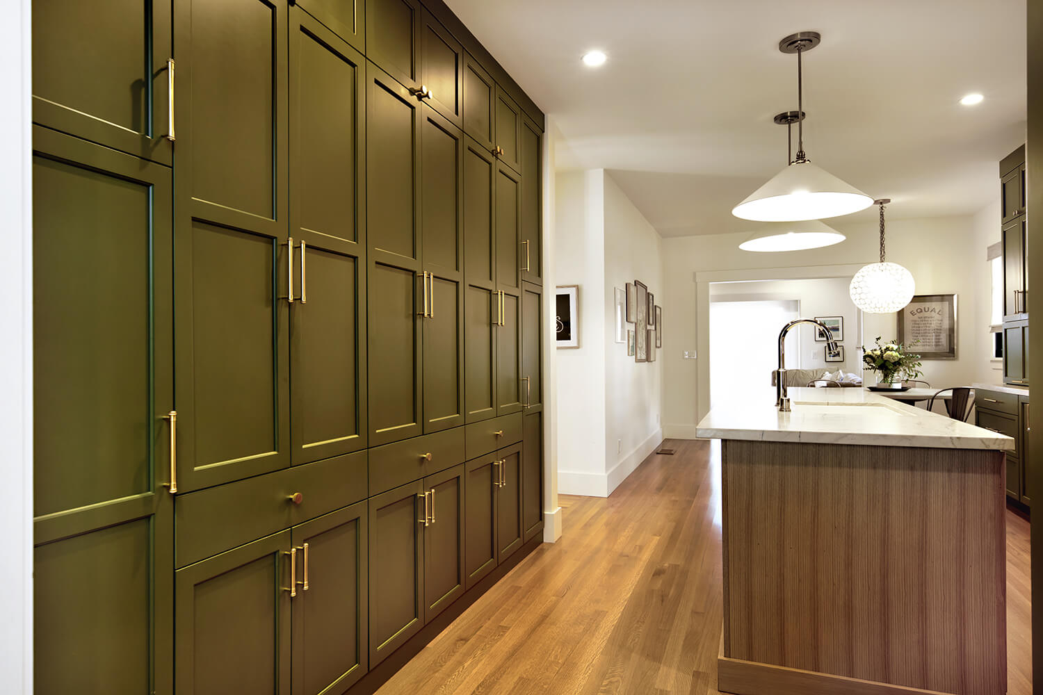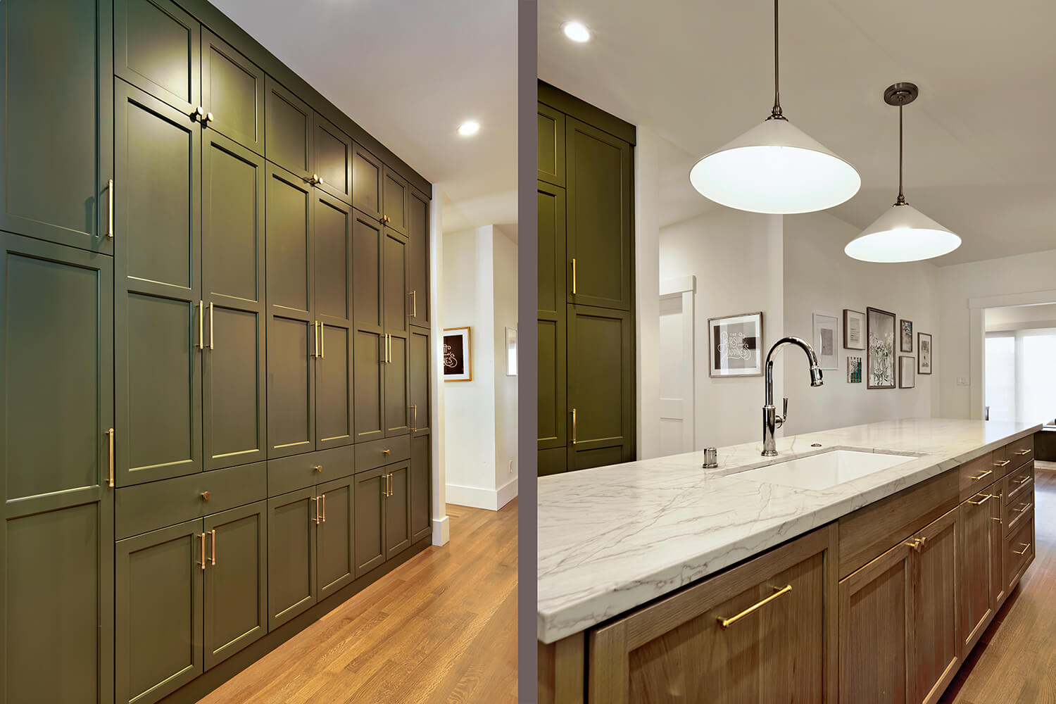 To enhance the fluidity of the design, we chose a soft color palette and high-quality materials that tie the spaces together visually. Thoughtful placement of lighting, along with strategically designed work areas, ensures both functionality and aesthetics are prioritized, transforming the entire space into a modern, multi-purpose area that caters to both cooking and socializing. The result is a kitchen that feels expansive, bright, and effortlessly connected to the rest of the home.